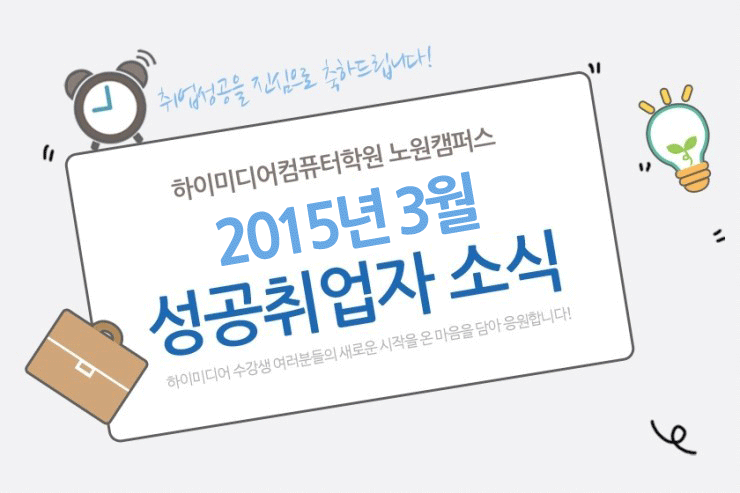 하이미디어컴퓨터학원 노원캠퍼스 2015년 3월 성공취업자 명단입니다.